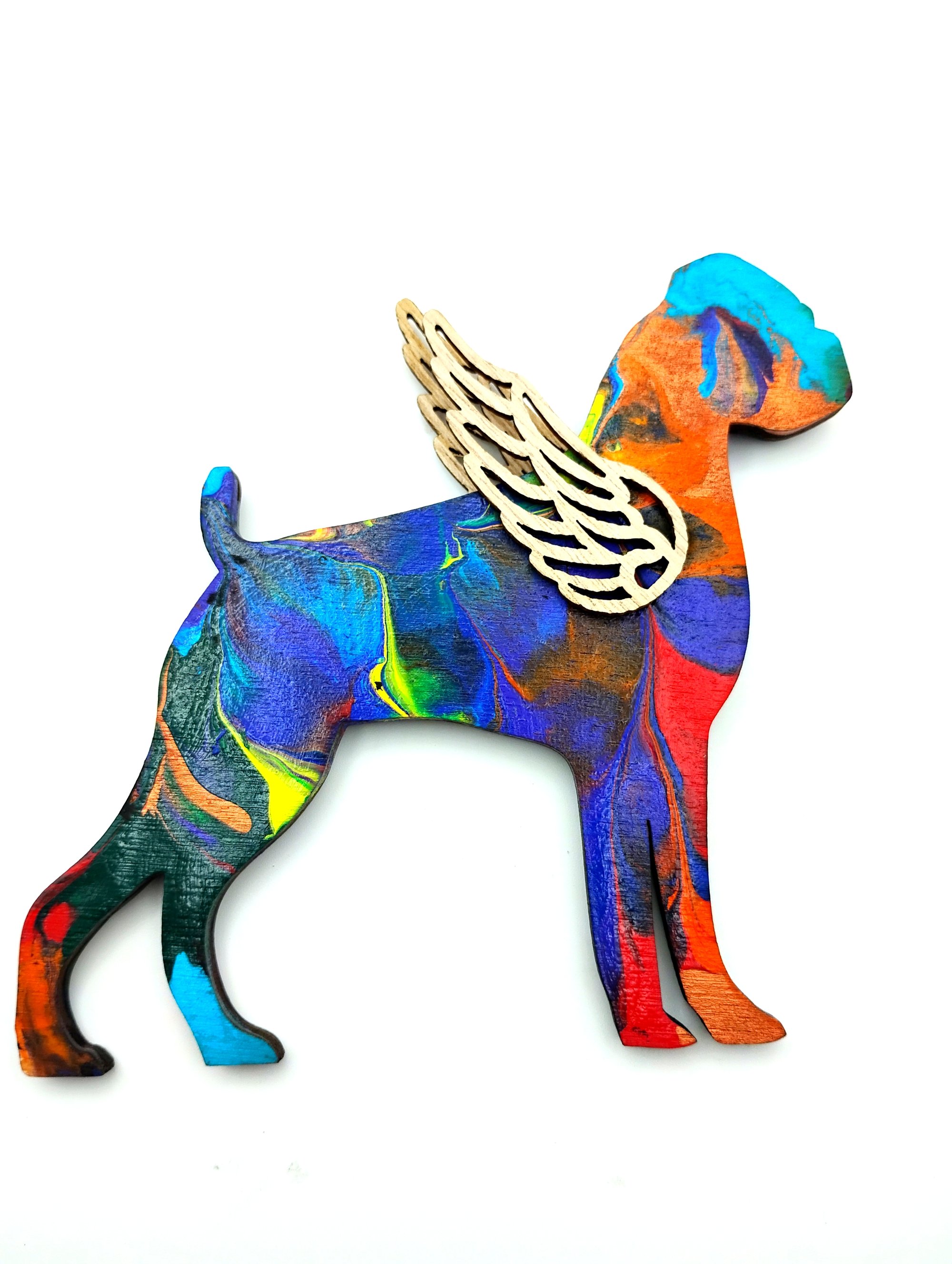 Hand painted wood rainbow boxer angel ornament