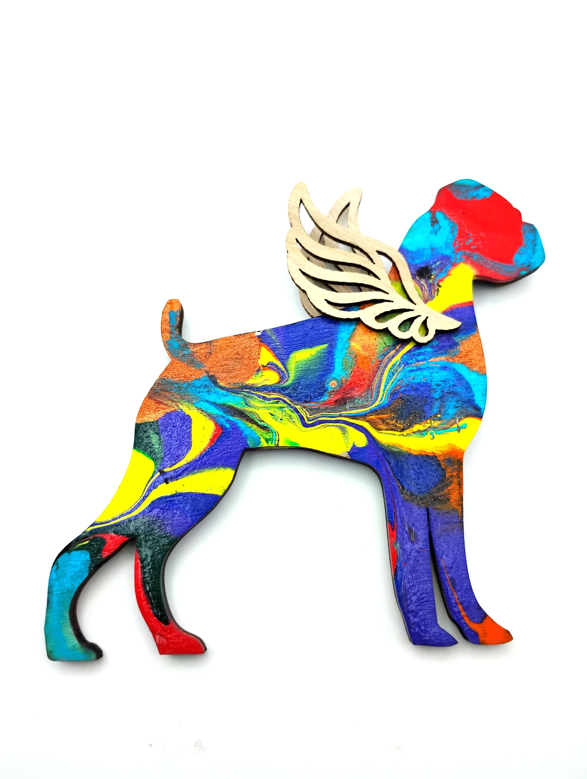 Hand painted wood rainbow boxer angel ornament