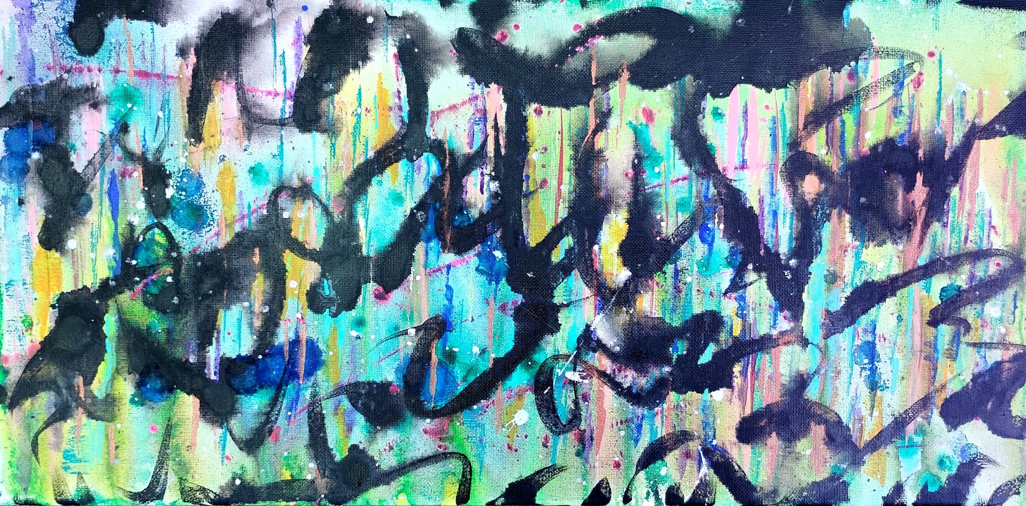 My paintings are about lots of color and overwhelming the eyes. I want the viewer to notice new details with every fresh look, experiencing a range of emotions and unable to look away from the piece. My favorite materials to use: acrylic, ink, gold foil, glitter.
