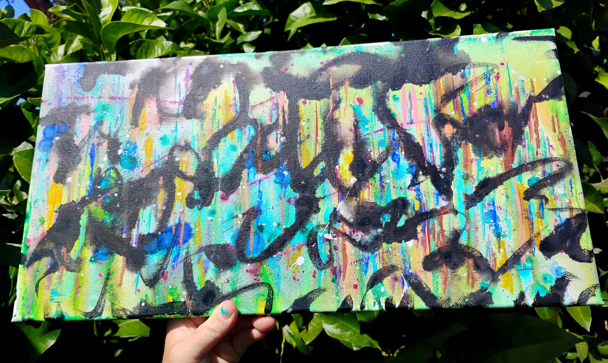 -CUSTOM- Hand-painted, one-of-a-kind. Beautiful, vibrant, unique abstract acrylic and ink on 10x20 gallery wrapped canvas! The sides of the canvas are painted so your new painting is ready to hang! The visual quality of this abstract painting is stunning in both indoor, and natural light. It is varnished to protect from UV damage. Each painting purchased comes signed and dated verifying that this is an original piece of art created by me.