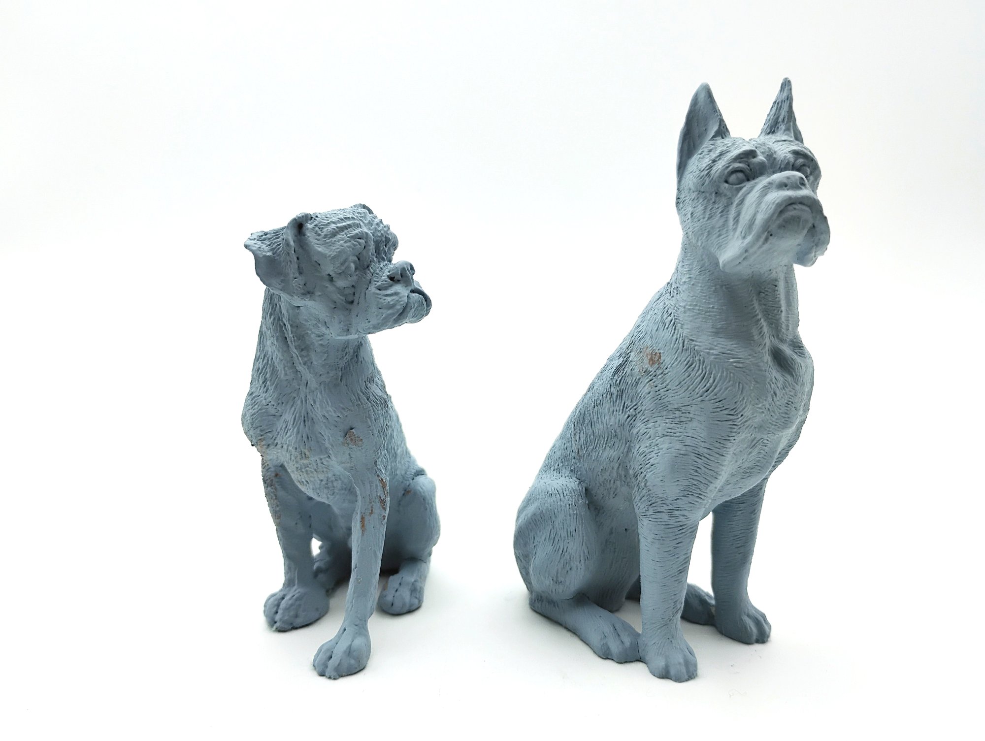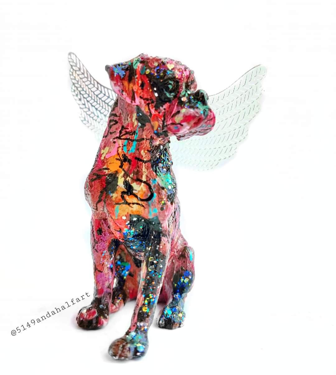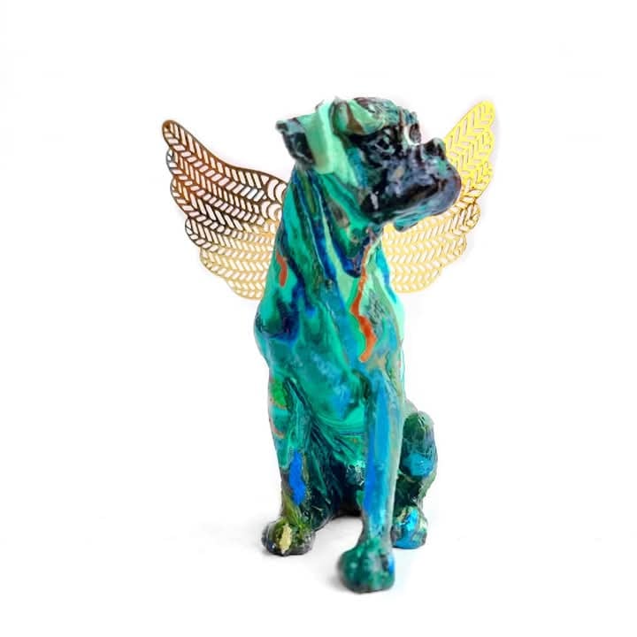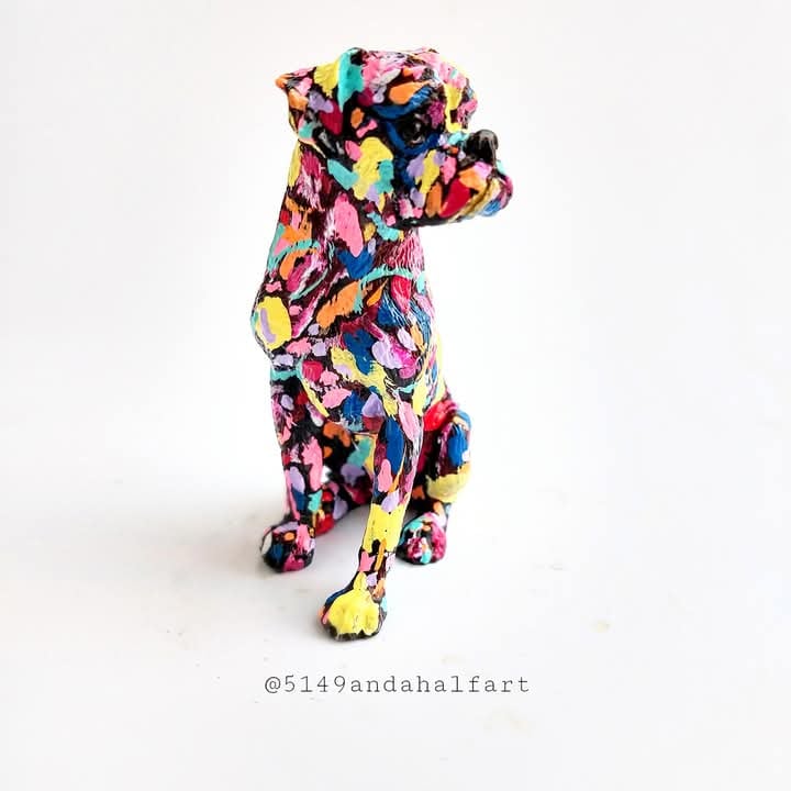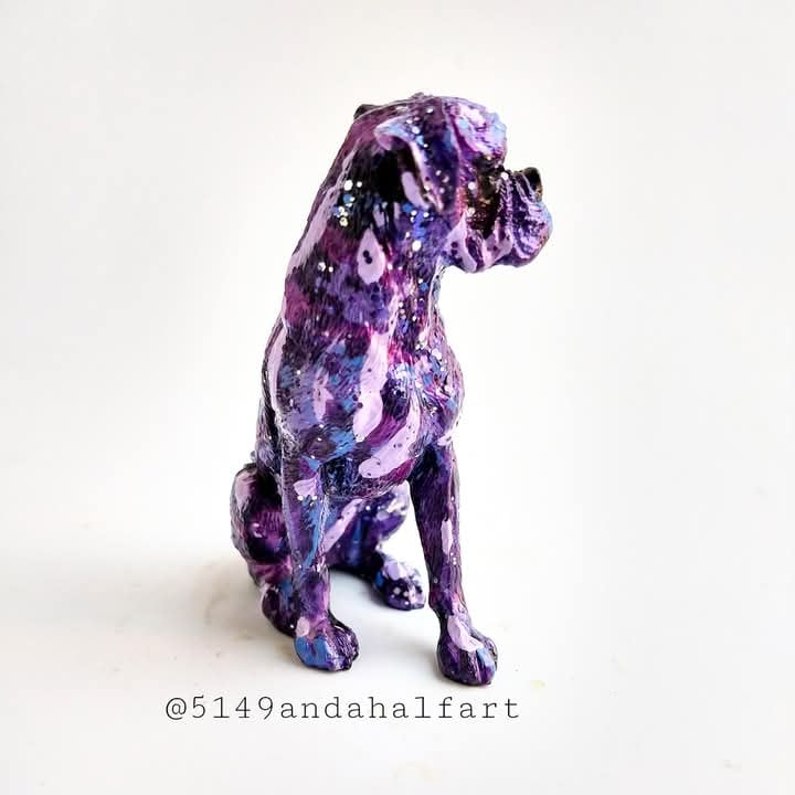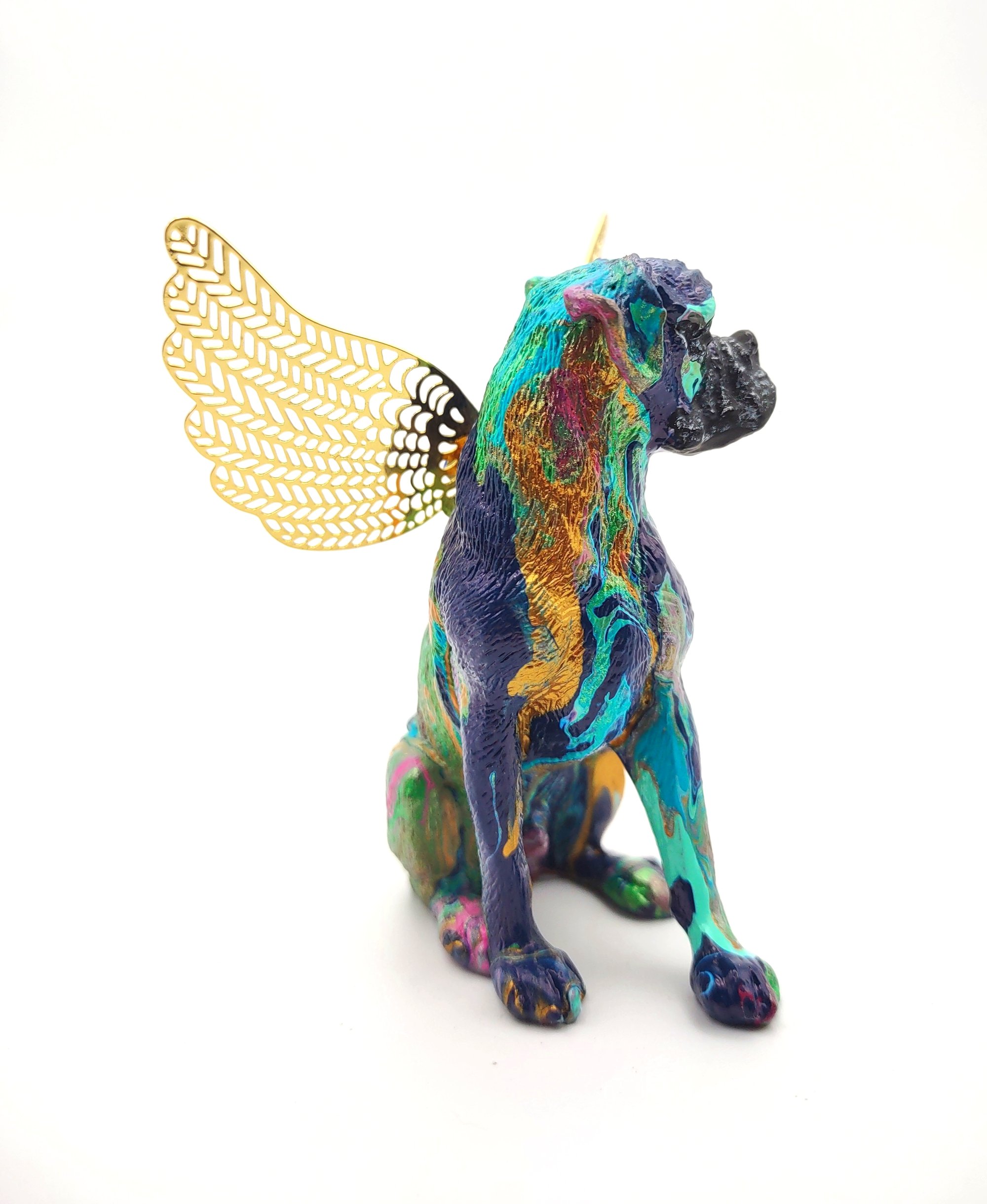 I paint these boxer figures in wild, vibrant colors because that is exactly what a boxer is....a funny goofball, bursting with love and full of personality...a breed like no other. Each boxer figure is totally unique. And these figures fund my art donations to rescues throughout the year to help fundraise. So while the figure may be in memory of one boxer, it can help even more.
