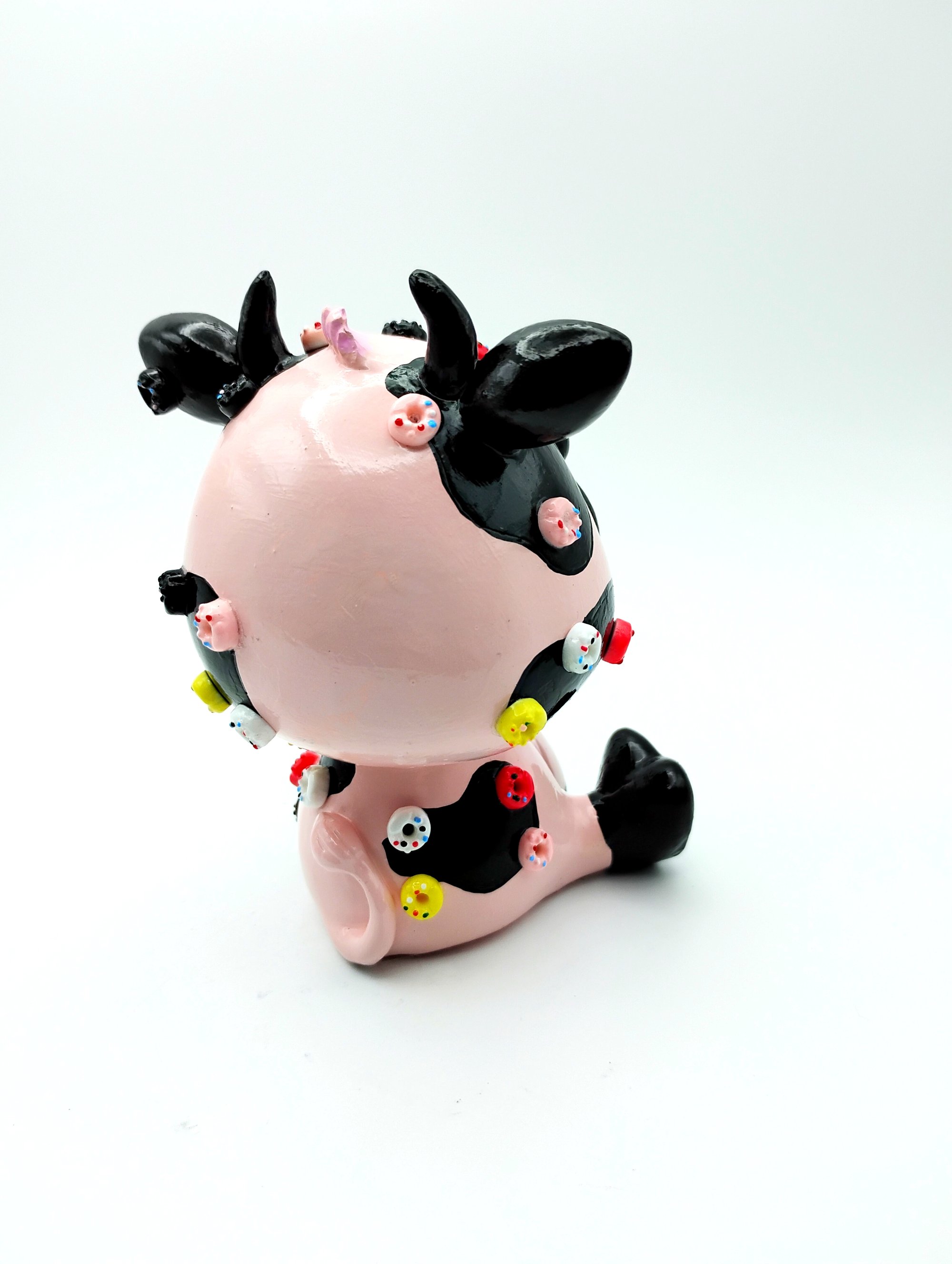 My paintings are about lots of color and overwhelming the eyes. I want the viewer to notice new details with every fresh look, experiencing a range of emotions and unable to look away from the piece. My favorite materials to use: acrylic, ink, gold foil, glitter.