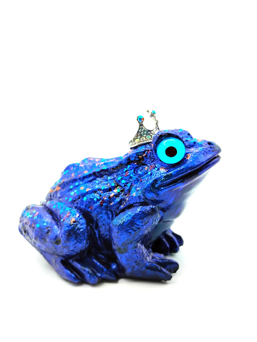 This very colorfully abstract painted resin frog wearing a charm crown is one of a kind.